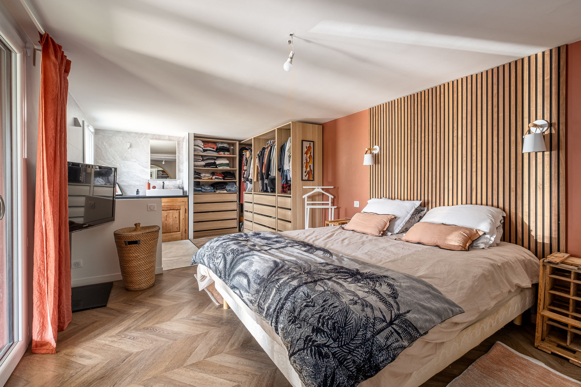 Conservant uniquement la toiture et les quatre murs d’origine, cette maison de 140 m² a été entièrement repensée pour atteindre le niveau BBC. Isolation renforcée, aménagements intérieurs sur mesure, reformulation des volumes et intégration de systèmes performants transforment l’existant en un habitat contemporain, confortable et durable.